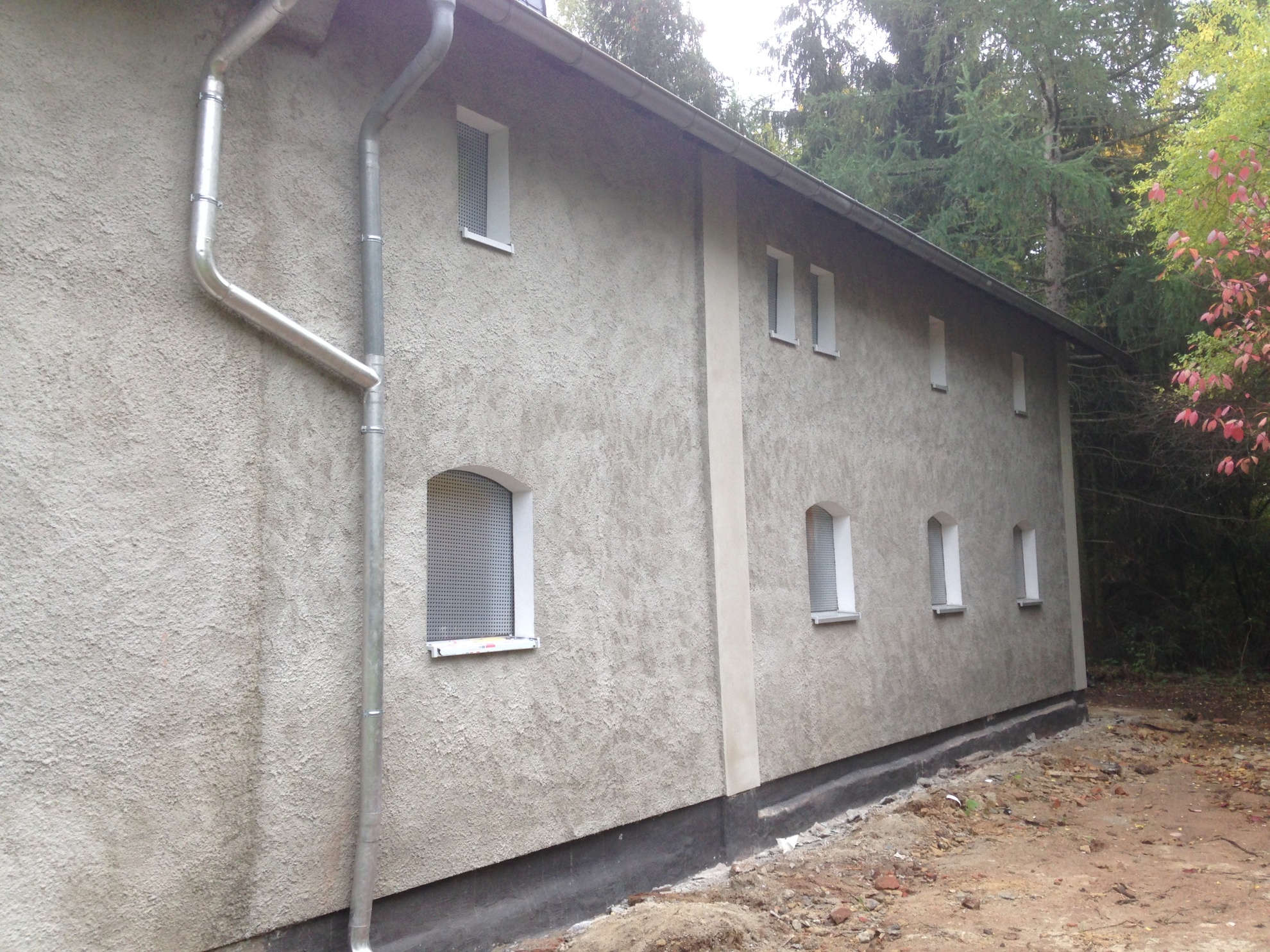 Von August bis November 2022 wurde der 3. Bauabschnitt (Ostseite/nördliche Giebelseite) mit Hilfe vorgenannter Förderung realisiert. Die Maßnahme beinhaltete die vertikale Abdichtung des Fundamentes, einschließlich einer Drainage, die Trockenlegung des Mauerwerkes durch Injektionsverfahren, den Aussenputz der Fassade sowie dem (vorläufigen) Verkleiden der Fensteröffnungen. Dabei mussten die Vorgaben der Denkmalschutzbehörde hinsichlich Farbe und Art des Putzes beachtet werden.