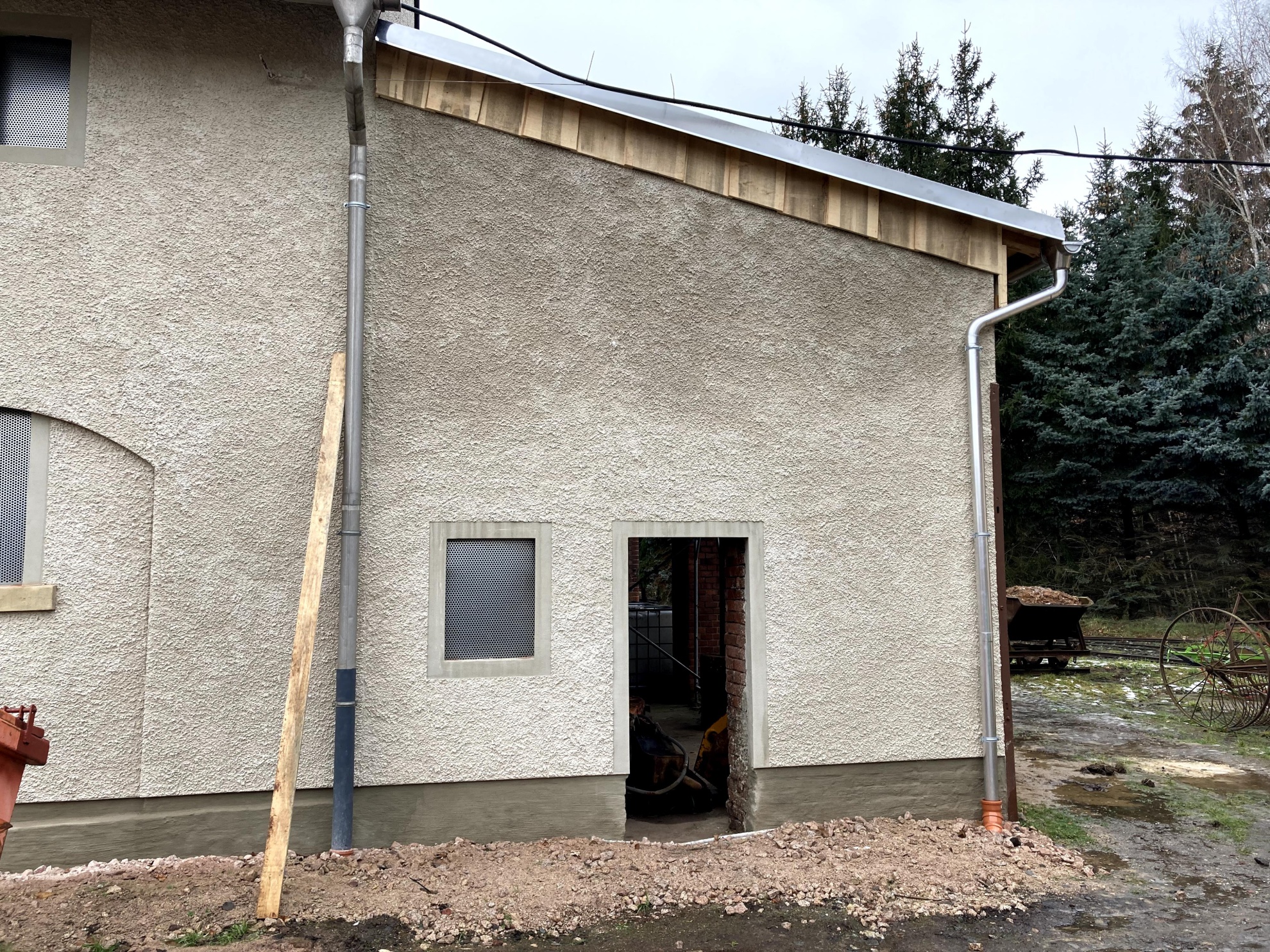 Die restlichen "Feinarbeiten" wie z.B. die Aufarbeitung der Eingangstür am ehemaligen Wohnhaus, der Einbau entsprechender Fenster in den beiden großen Wandöffnungen sowie die Gestaltung der Aussenanlage wird 2023 vom Fördeverein in Eigenleistung durchgeführt.