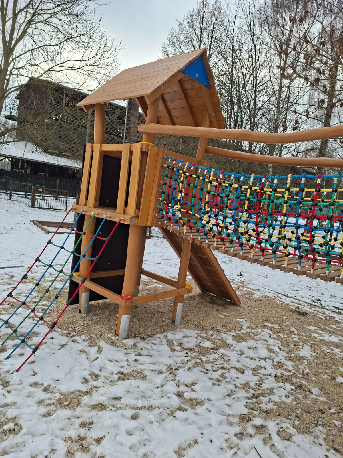 Direkt neben dem Imbiss befindet sich ein schöner Kinderspielplatz mit Rutsche, Sandkasten, Schaukel und Klettergerüst. Auf dem Platz befinden sich auch mehrere Bänke, so dass sich die Eltern ein bisschen ausruhen können, während die Kleinen spielen.